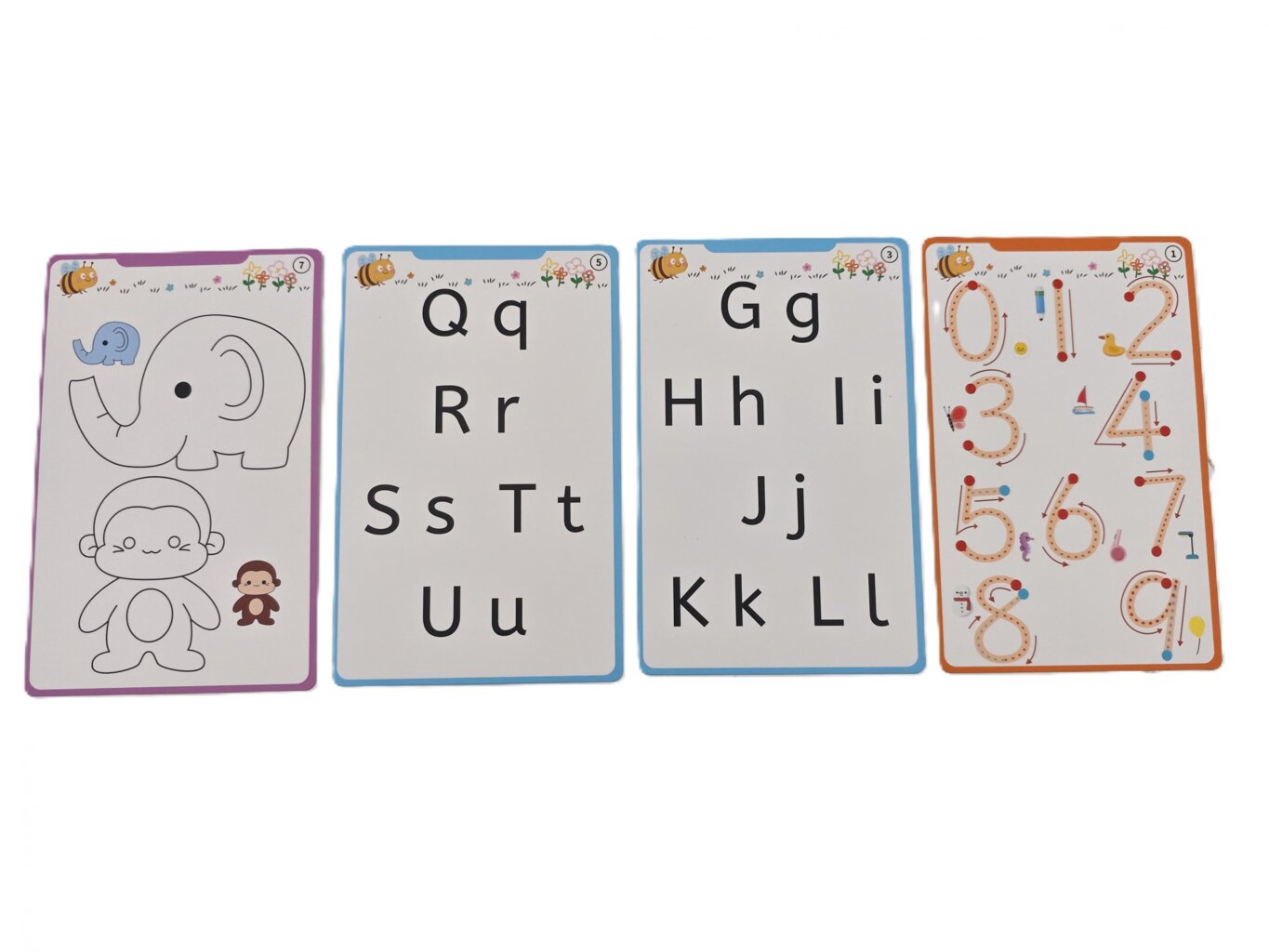- Litere și cifre: Pentru preșcolari, tabelul este un instrument excelent pentru a exersa scrierea primelor litere și cifre. Șabloanele îi ajută să învețe forma și conturul corecte, ceea ce va face tranziția la școală mai ușoară.